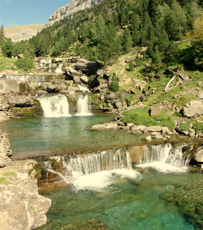 El retorno hacia la entrada del parque a pesar de ser por la pista, esta llena de regalos para los sentidos disfrutando de las gradas de soaso, unas cascadas impresionantes que te enamoras de ellas nada más verlas, es como cuando una mujer te mira con unos impresionantes ojos azules y te cautiva su mirada. El bosque de hayas con su imagen de cuento de hadas y las cascadas del Estrecho y Arripas. Me hubiese gustado regresar por la faja de las flores pero la petada hubiese sido tremenda y tengo muchos días aún para disfrutar de una Huesca extraordinaria. Es el tercer año consecutivo que visito Ordesa, y para mi es como la visita a tierra santa, a un santuario en el que recargar las pilas, descargar el alma de tensiones y dejarla suelta, libre soñando para que durante el resto del año me susurre al oído la frase de Robert Schumann La libertad asusta cuando se ha perdido la costumbre de utilizarla, úsame y no tengas miedo.