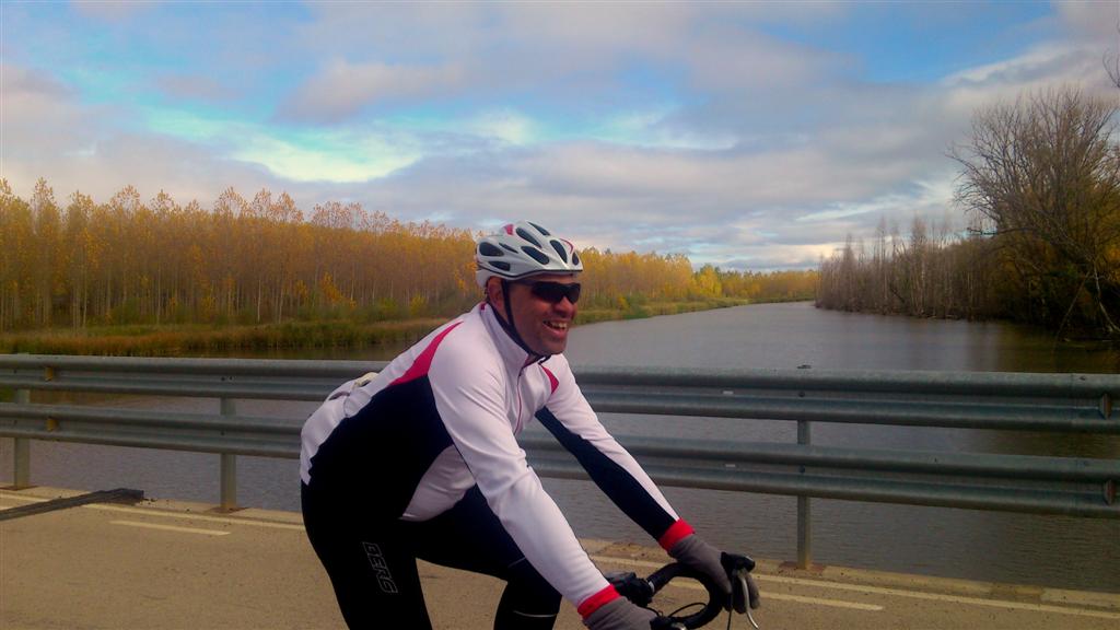 Decidimos volver al coche y dar por concluida nuestra ruta estira piernas y la vuelta nos sorprende con una carretera en perfecto estado, vamos casi a estrenar y un paisaje de monte bajo espectacular para terminar cruzando el Duero con el otoño como protagonista en su ribera. Como se me ha roto la tarjeta de la cámara sacamos unas fotos con el teléfono las únicas para ilustrar esta crónica y completamos nuestro circulo rodando por un gran recta flanqueada por un mar de invernaderos que no nos quedo muy claro lo que cultivaban. Al final terminamos entre risas llegando al pueblo, yo ya con la reserva en mis piernas y feliz por el gran puente que hemos disfrutado y la verdad es que lo necesitaba.