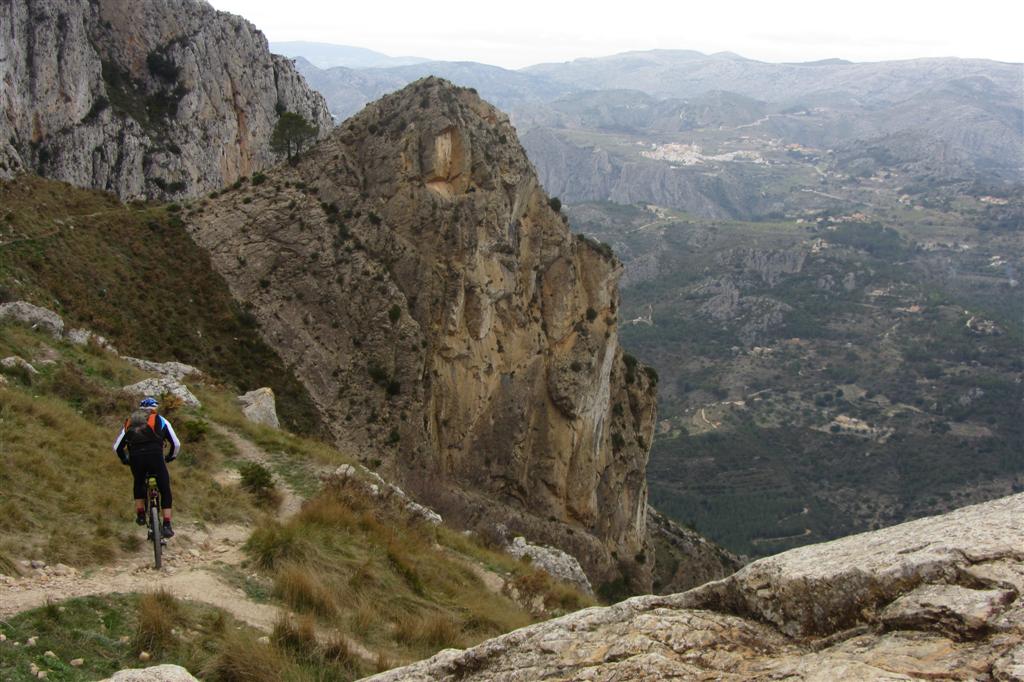 IMG_3185 (Large)Con la certeza que el fuerte es el punto más alto de la ruta y nos toca bajar si o si disfrutamos un rato de las vistas y nos vamos refugiando como podemos de un aire que comienza a ser pesadote. Si subir al fuerte de Bérnia con la bici de MTB es una tortura al principio y un suplico al final, su bajada es un descenso al paraíso, al flow extremo, al disfrute a lo grande por una senda con vistas o balcón a una buena caída pero que cuando notas la bici y sientes la bajada disfrutas cada metro que recorres, cada piedra que sorteas y ríes, te sientes feliz o mejor dicho grabas a fuego en tu mente que son estos los momentos por los que montas en bici, pago el precio más algo por disfrutar de lo mejor de la naturaleza y esta te lo devuelve con creces, el placer en el ciclismo creo que es proporcional al sufrimiento que inviertes en llegar a tu objetivo.