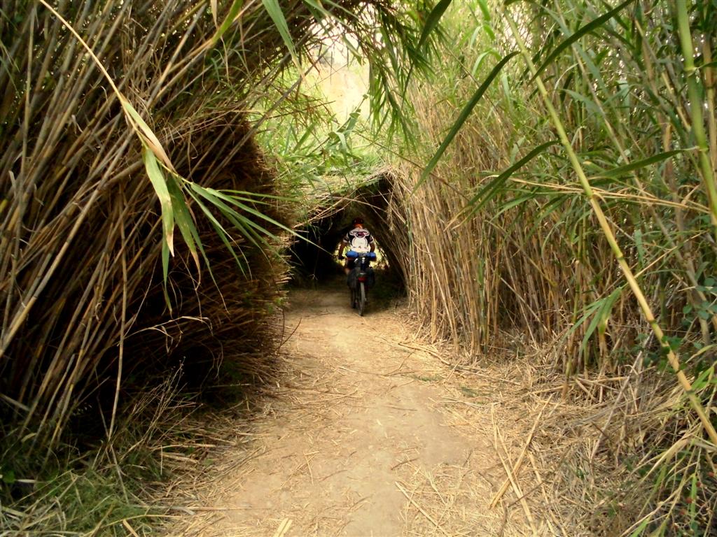 La senda termina en un túnel de cañas y esta en una pista que se deja rodar por la cola del embalse de Contreras, aunque nuestra posición en el GPS es que vamos navegando por las aguas del CIMG1259 (Large)embalse.