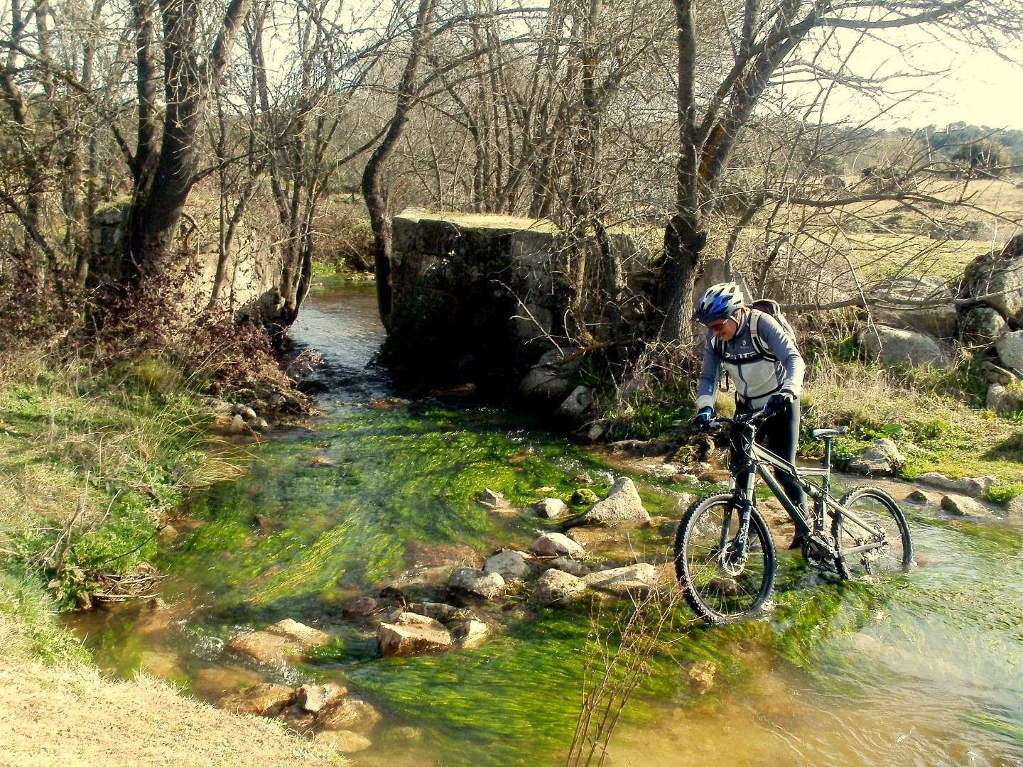 La senda termina vadeando el arroyo de los conejeros para tornarse ciclable al 100% y como teníamos tantas ganas de pedalear, la ruta nos regala unas buenas cuestas con las que dar gusto a las piernas, hasta Fresnedillas de la Oliva en donde JJ decide volverse por carretera y nosotros continuamos con nuestra ruta.
