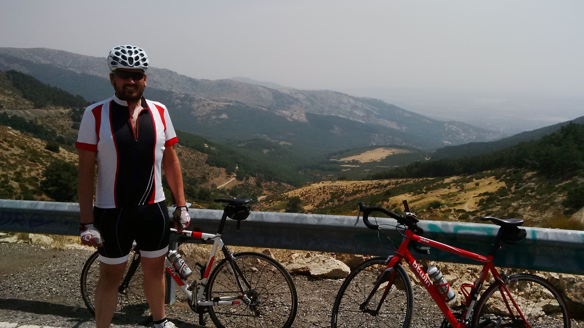 Nosotros dejamos entre risas el puerto disfrutando de una de las bajadas más bonita y olvidada de la comunidad de Madrid. Mientras rodamos por la aburrida carretera que une Canencia con Rascafría aprovechamos para el momento barrita y para ver como al acercarnos a una curva un guardia civil en moto que esta para señalizar una accidente para a un coche, prácticamente abalanzándose sobre él ya que pretendía adelantarnos, mientras se acerca a la ventanilla del conductor gritándole con grandes aspavientos “pero donde vas adelantando a unos ciclistas en curva y sin metro y medio de distancia”, me gusta la gente que sabe hacer muy bien su trabajo. Los últimos kilómetros los hicimos detrás del grupo de chozas parapetados con su coche de apoyo.
