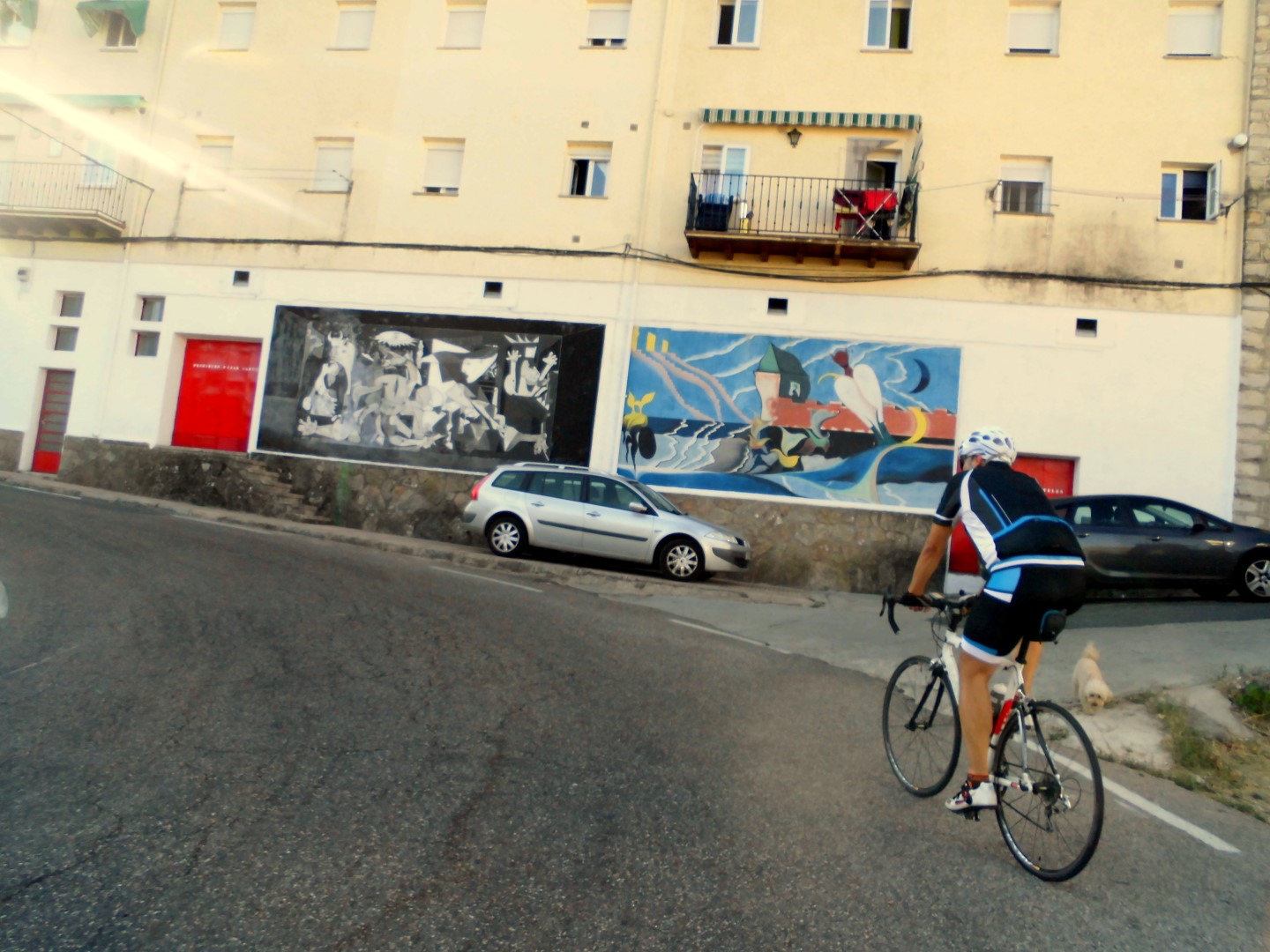 Santa Cruz del valle es uno de estos pueblos peculiares que han decido sacar el arte a la calle y lo primero que disfrutas al entrar al pueblo es la reproducción en la fachada de una casa de la mucha en la venta de Salvador Dalí para continuar entre otras reproducciones con el Guernica de Picasso. Pero nosotros vamos buscando otro arte, más natural y es el del fantástico paisaje de la zona que a modo de balcones te lo ofreciendo poco a poco, con un desnivel sostenido que te permite disfrutar del entorno.