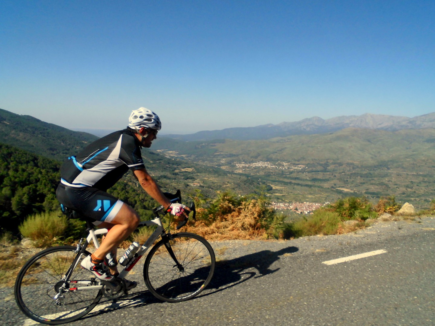 Mijares nos ha dejado con las piernas satisfechas de puertos y emprendemos la bajada donde una furgoneta blanca estuvo cerca de poner fin a este blog y según palabras de Dani que lo vio desde atrás pensaba que no lo contábamos, ya que los lugareños acostumbrados a circular por esta carreteras sin tráfico usan todo el ancho de la calzada para subir sin respetar nada ni a nadie. Menos mal que somos de los que bajamos con el freno de mano puesto y pudimos rodar por el canto del asfalto para evitar darnos con ella. En Mijares y tras sortear a otro anormal con todo terreno, hacemos una pausa para el bocadillo y tener que soportar el continuo bucle de la grabación de una furgoneta animando a las mujeres a comprar melones “dulces como la miel”.