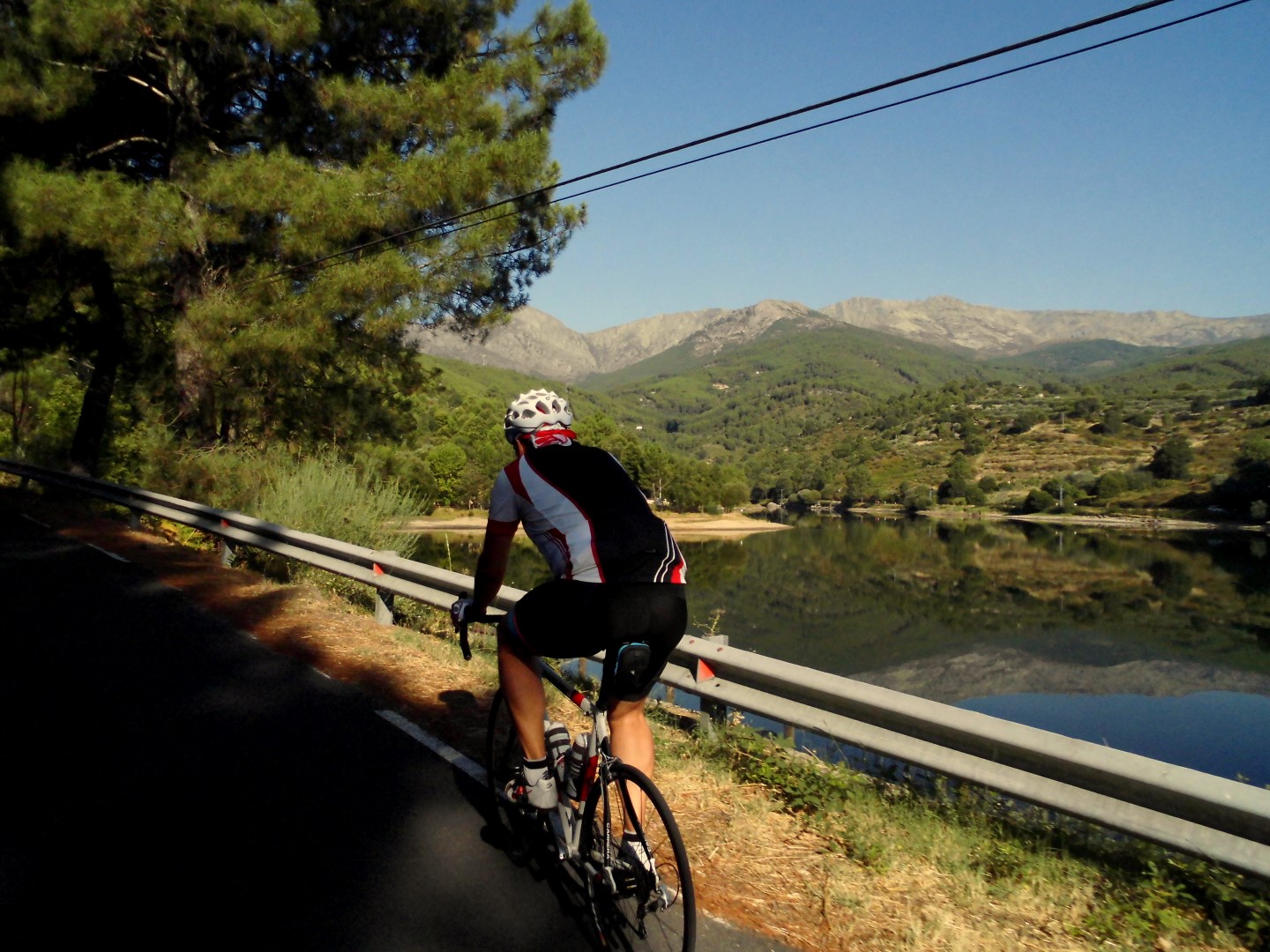 Opto por subir por la carretera a Guisando, me gusta la dureza de este tramo con rampas del 12% acompañadas de unas vistas fabulosas del Embalse de Río cuevas, que a modo de Ibuprofeno te van calmando el dolor de piernas. Pero lo que verdaderamente te da la paz espiritual es el tramo entre el cruce de Guisando y el pueblo del Hornillo en donde apenas nos pasó ningún vehículo y pudimos disfrutar de la naturaleza en su plenitud, en pocas ocasiones puedes sentirte sobre la flaca como si estuvieses rodando sobre una pista en mitad de la montaña con tu MTB pero Gredos si es capaz de regalarte estos momentos.