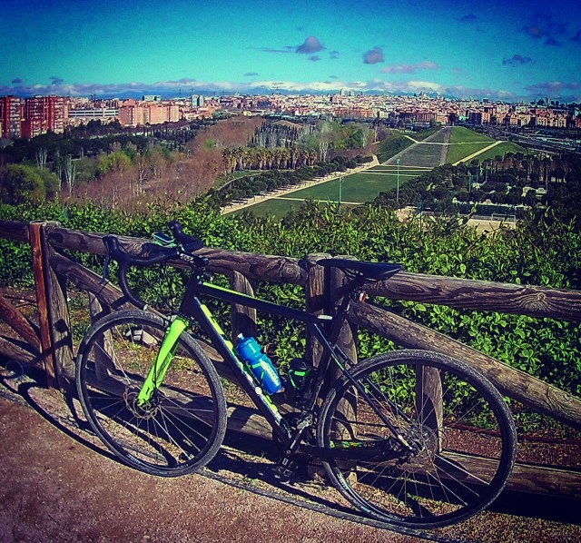 Le mando un mensaje a José, él va a salir, quedamos en la casa de campo, pero antes me pregunta ¿con cuál estas? José odia a Dora no le gusta para nada. Pero a mí me encanta y voy tremendamente feliz con ella, grabo unos videos rodando por el parque lineal y por Madrid Río. La casa de campo es un hervidero de bicicletas, de estilos y de grupitos. Antes de llegar al Zoo me encuentro con José, rodamos de cháchara, optamos por subir Garabitas por la cara de antes de llegar al Lago. Un ciclista sentado en el suelo se agarra el hombro, José le pregunta si está bien, el asiente, no tiene buena cara, como está acompañado seguimos subiendo acumulando metros a una cuenta sin saldo de ascensión este año. Se me hace corto, bajamos y volvemos a subir en lo alto os encontramos con cymrun un viejo amigo del foromtb de la vieja guardia. En la bajada nos encontramos a la policía con el Samur atendiendo al ciclista herido que envuelto en una manta y con un