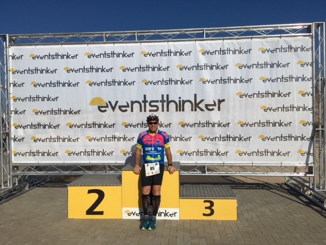 La transición la hacemos rápido y casi me monto en la bici cuando una jueza me dice que tengo que correr hasta la bandera. Jorge sale como alma que lleva el diablo, como una fiera hambrienta de runner donde ahora él juega en su elemento y clama venganza. La verdad es que fue realmente sencillo dejar de ser último para ir fagocitando corredores hasta el 5 donde de nuevo mi paranoia por el pulso me hace regular y encontrar un posición cómoda al final de un grupo, por lo menos la primera vuelta donde el viento comienza a soplar. En la segunda vuelta decido acelerar, paso a más corredores en las subidas y bajadas pero el viento en la zona llana es un poco malicioso y castiga, se me cruza un perro que me hace derrapar y poner píe a tierra, paso a mas corredores, me pica una abeja en el muslo y ya me da igual, esto tengo que terminarlo. En el último giro veo como otro corredor cae al suelo sin consecuencias, hago la transición sin errores y salgo corriendo hacia el run 2, muy cansado pero aún con algo de fuerza que se fueron diluyendo a medida que subía una cuesta sin fin, para luego ver una bajada muy larga que tendría que volver a subir, me cruzo con Jorge que ya sube, nos saludamos y algunos runner que había adelantado en la bici se cobran su venganza en su terreno, que mal voy corriendo. Apenas quedan 800 metros, veo la meta a lo lejos y sonrío esto es duro pero divertido, me pasa una fémina que había adelantado en el último cuarto del circuito, nos animamos y ella acelera, mi pulsometro marca alerta pulsación máxima y regulo, me da igual, mi victoria es cruzar la meta, la gente aplaude, el speaker te recibe en la entrada para darte la mano, cruzas la línea de meta y eres feliz, por dejar de correr, por ver que si quieres, le pones dedicación y luchas puedes, pero sobre todo si crees en ti y