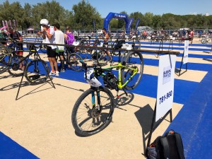 Me pongo pegar pegatinas e instalar los dorsales mientras la organización instala la boyas, mientras navega pienso no vayas mas lejos si esta perfecta donde estas, pero no el tenia que navegar un poco más, bueno no las veo tan lejos esta vez, ademas tu has nadado de forma seguida en piscina 1,800 metros seguidos no tienes problema para 350 metros son 10 minutos en el peor de los casos en el agua. Mientras me preparo un pesado me fríe a preguntas sobra la prueba, me voy a la zona de transición para dejar la bici y me encuentro con Oscar del Club 3T Tri Trail Team en el que estoy.