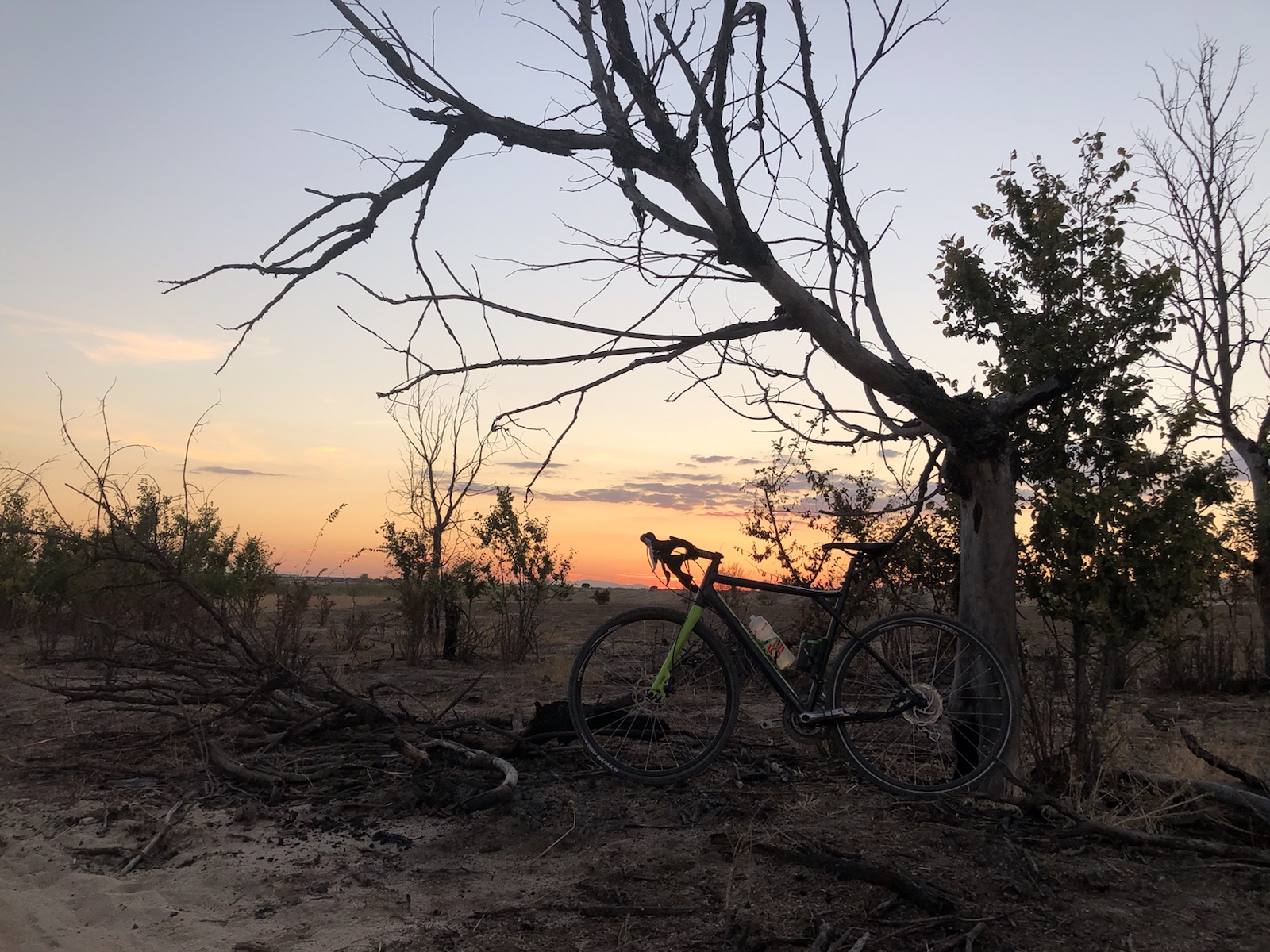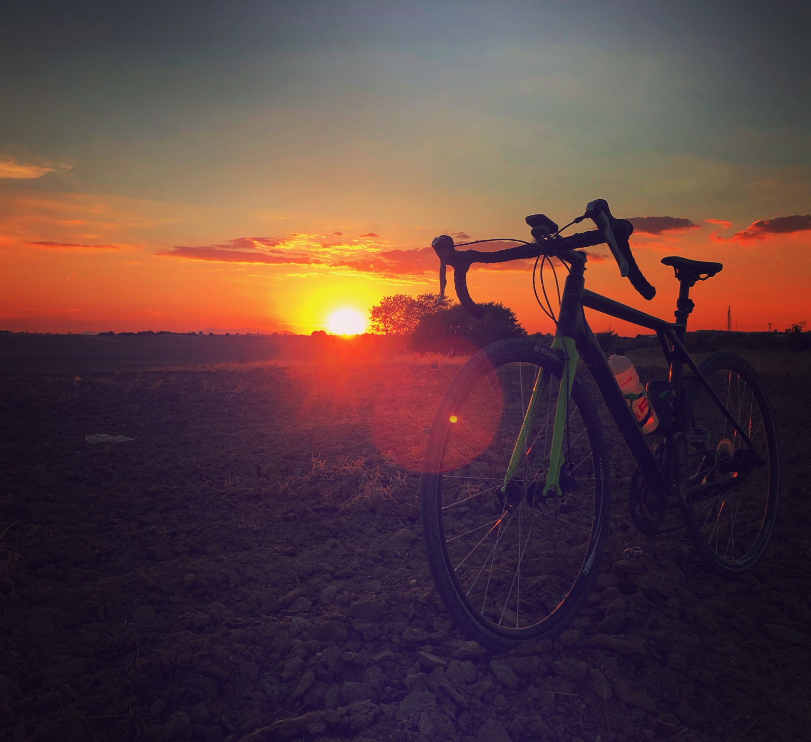 decepcionó, estudio y aprendo para la próxima como superarlo.Subo hacia la finca cuando los tonos anaranjados empiezan a teñir el horizonte, empieza la ceremonia del atardecer. Pedaleo con más ganas, con fuerzas renovadas o tal vez aprendiendo a sufrir más y mejor, es mi asignatura pendiente. Como deberes me pongo estoicismo y juegos del hambre. Me regalo los senderos de la universidad, mi amigo Jose (Suguss) dice que estoy tonto por bajar con la gravel por esa senda, que es de locos, pero el odia a Dora, no la entiende y mi pequeña exploradora disfruta a su ritmo las sendas y pequeñas trialeras, con el sol frente a mi montando el espectáculo del atardecer me cuesta centrarme en la bajada y tengo que para para sacar algunas fotos de momentos mágicos que duran segundos.