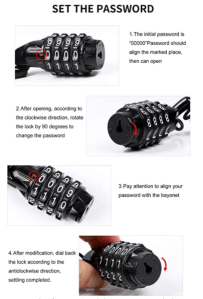 introduce el candado para cerrarlo se gira en sentido horario (tiene una flecha indicándolo) y una vez girado se introduce el nuevo código a nuestra elección, una vez seleccionado se gira en sentido contrario y el código introducido sera nuestra nueva combinación. Es conveniente dejarlo apuntado o hacerle una foto, ya que no habrá forma de abrirlo si no es rompiéndolo de no poder la combinación adecuada.