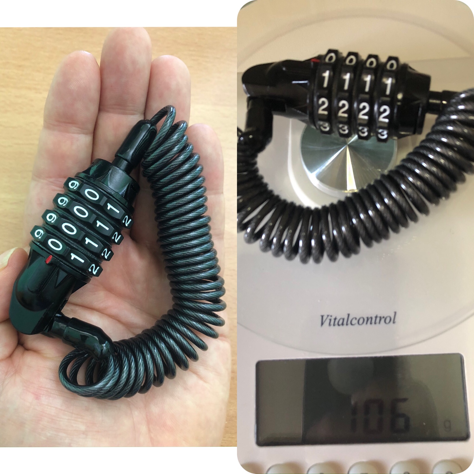 Es un candado económico y muy ligero, pesa 106 gramos, para mi ligero para llevarlo en la mochila o el bolsillo del maillot, apenas ocupa espacio siendo el selector de combinación la parte más aparatosa ya que el cable es realmente fino.