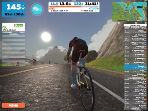 En estas semanas quiero montar en bici, por lo menos una hora o 20 km y me gustaría que fuese todos los días. El Sábado me interrumpieron la sesión y bueno quedo rara, pero me divertí con el rodillo interactivo ya en modo simulación de terreno. Pero cuando realmente me le pase genial fue el domingo que complete la ruta de Watiopia con pocos kilómetros 30 y poco desnivel algo menos de 300 metros. Disfrute rodando con cadencia, sintiendo velocidad en la piernas o ese cosquilleo de estar dando vatios y entrenando. Tenía poco desnivel pero digamos que todo en montoncitos a modo de Kom, realmente divertido y rodar en forma virtual codo con codo con otros avatar que vas superando o que estas un buen rato luchando por cruzar antes la meta volante virtual es realmente motivador y estimula la ganas de subirte y hacer kilómetros.