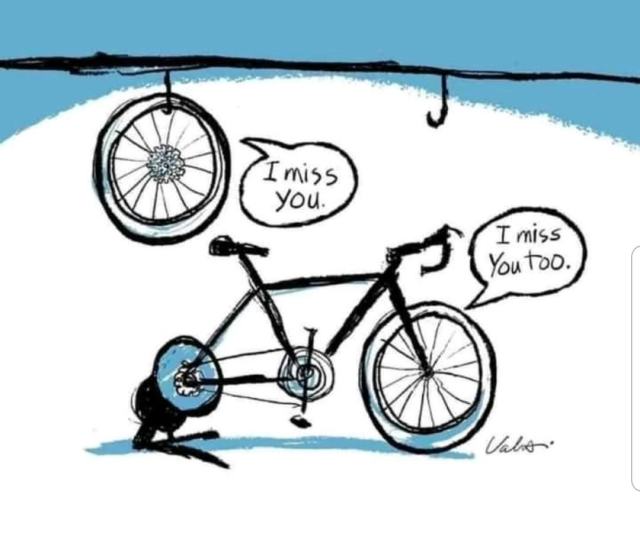 La semana en si ha sido una verdadera montaña rusa de emociones, no ha sido una buena semana, se podría decir que he estado con la puerta abierta de mi vida y apunto de mandar todo a tomar por culo cerrando de un portazo tras de mi. Al final el rodillo ayuda a canalizar al frustración y el desasosiego. Lo que no ayuda es poner la potencia de resistencia al 100% que me tiene las piernas agotadas. Un día puede sacar ganas para hacer fuerza, las de ganas de iniciar mis entrenamientos de carrera no las encontré por la casa y eso que las busqué. Como anécdota diré que un día me vestí para andar una vuelta al perímetro de mi confinamiento ( cada día tengo la mas absoluta certeza que soy el único que lo esta respetando) y una vez preparado mi mascarilla puesta, abrigo, auriculares, etc. Apago la luz y la cocina se ilumina por un segundo por relámpago seguido de un trueno. Me lo tome con un humor ya que no dejo de llover en un buen rato y por lo menos bajé la basura.