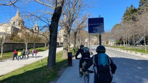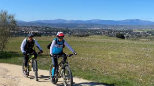 Nos cuesta un poco reparar la cadena y afrontamos la subida hasta Majadahonda por la pista paralela a la carretera. Los terratenientes no son partidarios de compartir los