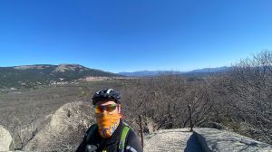 En Valdemorillo hacemos una breve pausa para quitarnos ropa de abrigo, tomar un respiro de las cuestas que nos han dejado en lo más alto del pueblo y disfrutar de la compañía de un burro divertido al otro lado de la valla. La bajada de Valdemorillo a Villafranca del Castillo es muy rápida con vistas increíbles a Madrid. Aquí hacemos una nueva parada para reponer líquidos. En la salida de Villafranca y bajo el puente de la carretera rompo la cadena golpeando la maneta del cambio con mi rodilla que se queja.