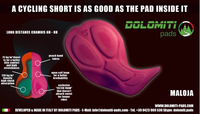 Incorpora una badana de alta gama suministrada por Dolomiti Pads, y desarrollada para distancias medias y largas, con espuma interna perforada de una densidad de 120 (kg meto cubico) una alta densidad de badana usada para zonas que sufren un gran impacto,