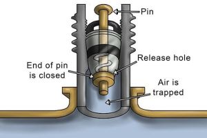 Es decir, que únicamente permite el flujo de aire en una sola dirección. El pivote o vástago tiene un resorte que lo mantiene en posición de cerrado y se abre con el flujo de aire del inflador.