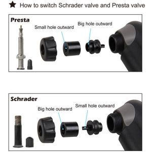 Hoy en día, la mayoría de las bombas de aire para bicicleta te permiten inflar llantas con válvula Presta sin problemas, ya sea a través de boquillas intercambiables, boquillas universales o cabezales duales.