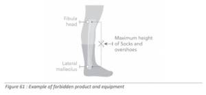 Como dato curioso comentar la normativa de la UCI, de acuerdo con su artículo 15.10.18, donde establece que las medias o calcetines usados por los deportistas en las carreras de ciclismo profesional “no pueden superar la altura definida por la mitad de la distancia que hay entre la mitad del maléolo lateral y la parte media de la cabeza del peroné».