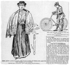 Vestida al más puro estilo de la era victoriana, con una falda negra larga, una camisa entallada, un blazer y un sombrero de paja, Annie comenzó su viaje en una bicicleta Columbia de 19 kilos. Tenía un solo engranaje y ningún mecanismo de rueda libre, vamos era una fixie lo que significaba que los pedales giraban con las ruedas. Al ir cuesta abajo, podía colocar los pies en los apoyos montados en la horquilla delantera, para que los pedales giratorios no se enredaran en sus faldas y la hicieran caer al suelo. Sólo la