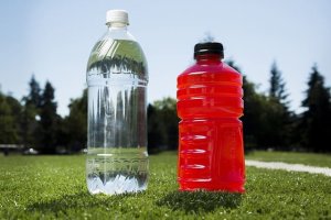 2. Bebe mucha agua y bebidas deportivas isotónicas. Estas a menudo contienen sodio y electrolitos, para reemplazar los niveles de sal perdidos a través del sudor. No esperes a beber solo cuando tengas sed; sigue tomando agua a intervalos durante todo el entrenamiento o trayecto. Asegúrate de beber líquidos antes y después de montar. Siempre es importante rehidratarse y reponer los líquidos perdidos. Si bien el agua siempre es una buena opción para enfriar la temperatura de tu cuerpo y ayudar a rehidratarlo, a veces el agua sola no es suficiente.