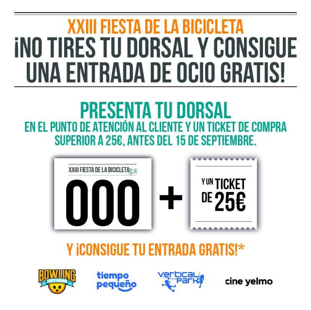 Además, el centro comercial Tres aguas, a todos los participantes que presenten su dorsal y un ticket de compra en el centro superior a 25€ en el punto de atención al cliente antes del 15 de septiembre ganará entradas para disfrutar en cualquiera de sus atracciones de ocio como son los cines Yelmo, la Bolera, Vertical Park, etc.