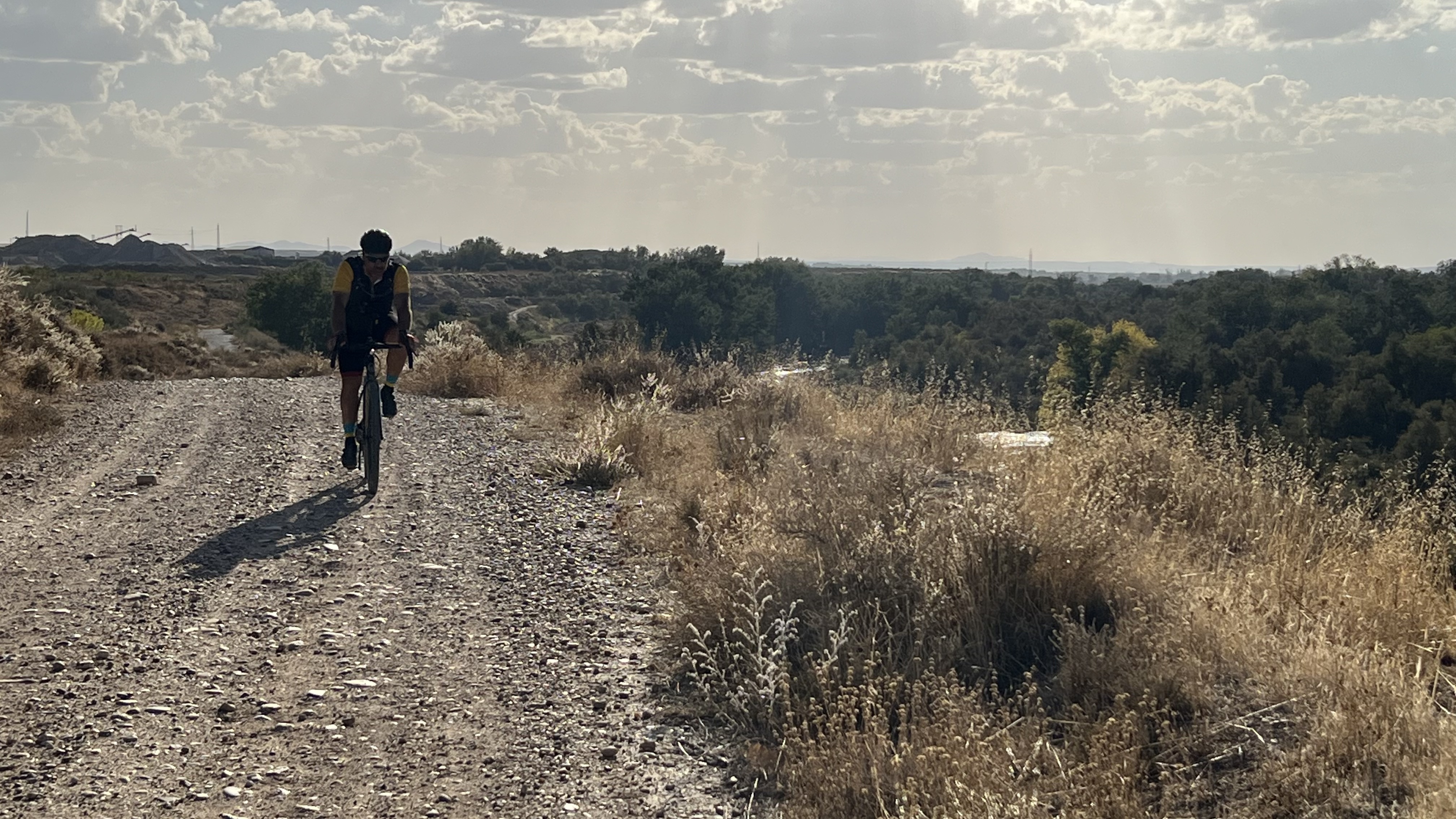 Nos vamos alejando del Guadarrama, nos adentramos en la provincia de Toledo y el paisaje cambia a cultivo de olivos. Un mal año de cosecha para unos árboles sin fruto o con minúsculas olivas deshidratadas. Una maquinaria de gran tamaño nos sobrepasa levantando una nube de polvo, es ahora cuando echo de menos mi braga, por algo los vaqueros del oeste siempre lucían un pañuelo atado al cuello.