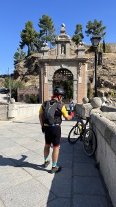 Dejamos Toledo rumbo Aranjuez por el puente de Alcántara, cruzando el Tajo y disfrutando de unas buenas vistas de Toledo. Por nosotros habría terminado aquí la ruta, pero Renfe no es bike frienly, no nos permite montar nuestras bicis en sus trenes de alta velocidad y nos ha quitado los cercanías, una espada toledana sí puedes llevar pero una bici no. Tocan 50 km para llegar a Aranjuez o volver rodando por el camino de vuelta. Somos poco de repetir camino, pero nuestro estado de forma busca la forma de regresar más amena y dentro de nuestras posibilidades que son dado nuestro estado de forma algo limitadas.