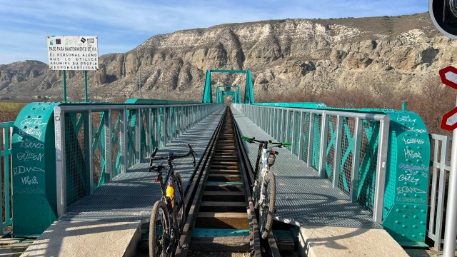 Una vez dejamos Torrejón de Ardoz y superamos unos cuantos pasos un tanto inundados de agua, tras cruzar el Jarama comienza el disfrute de senderos divertidísimos y ratoneros que nos dejaran en una pista que están acondicionando para encontrarnos en el maravilloso entorno de las lagunas de Velilla de san Antonio. Un lugar altamente recomendable para disfrutar de unas vista a sus lagunas maravillosas. Seguimos junto al río para encontrarnos con el remodelado puente de hierro, ahora es una delicia cruzarlo y el fondo con los cortados de Rivas le da un toque majestuoso y con el punto final de disfrutar de la magnífica laguna del Campillo. Hambrientos vamos buscando una bar abierto para comer y nos encontramos un pump track fantástico que no dudamos en probar.