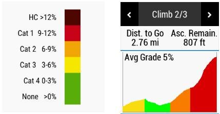 • HC (fuera de la categoría) > 64000Las subidas categorizadas se identifican en la página de elevación usando los siguientes colores.