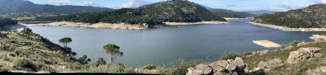 Jorge me ha propuesto esta ruta por azar, le preguntó a la aplicación del tiempo donde ir con mejor clima el día de la Almudena, festivo en Madrid y el destino agitó su coctelera para ponernos una ruta mágica con la que jugar y disfrutar nuestro día festivo. Salimos de Navas de Rey, frente al lupanar o cafetería nocturna de insomnes de barra. Es solo una anécdota, se aparca bien, el día es frío, lo suficiente como para ir con chaqueta, pero en el límite incómodo de ir jugando con las cremalleras. Comenzamos bajando, vamos buscando el embalse de Picadas, un remanso de paz si no vas un fin de semana o el tiempo no es nivel cinco estrellas en la categoría urbanita como para dejar el confort del centro comercial. Hoy es solo para nosotros y para una pareja de jabalíes que buscan comida cerca de la orilla del embalse. Asustadizos, no dejan de remover la tierra con sus hocicos poniéndose en alerta al más mínimo de nuestros movimientos.