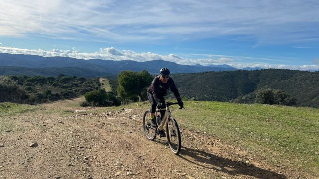 La subida a la ermita de Navahonda es dura, técnica y tremendamente bonita. Es uno de estos tramos que podríamos denominar premium, solo para suscriptores a los paisajes espectaculares, a las bajadas trialeras intensas y sabedores que nuestros límites como ciclistas rodarán continuamente al filo de la delgada línea que te mantiene al borde de la caída o lo que siempre digo al arbitrio del dedo De Dios.