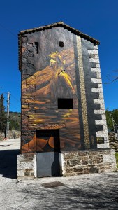 Cinco Villas nos regalo un descanso junto a una edificación decorada con una autentica obra de arte del grafiti urbano, todo un regalo para la vista, para disfrutar de una transformación de un edificio funcional, necesario pero feo, en algo bello, un soporte de arte para el arte urbano.
