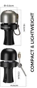 El timbre es compatible con manillares estándar de 22,2 mm. Se instala fácilmente con una llave Allen de 3 mm, asegurando un ajuste firme sin dañar el manillar y ademas hace de tapón, un dos por uno.