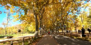 Por último en Madrid Río termino con la visita al nombre de Madrid creado en vidrio reciclado y situado estrategicame para ser fotografiado con el palacio real u la Almudena de fondo. Ya tan solo me queda subir hasta Alcorcón bajo un arbolado engalanado de Otoño, de ocre y de frío recalentado por un sol que hace lo que puede por calentar.