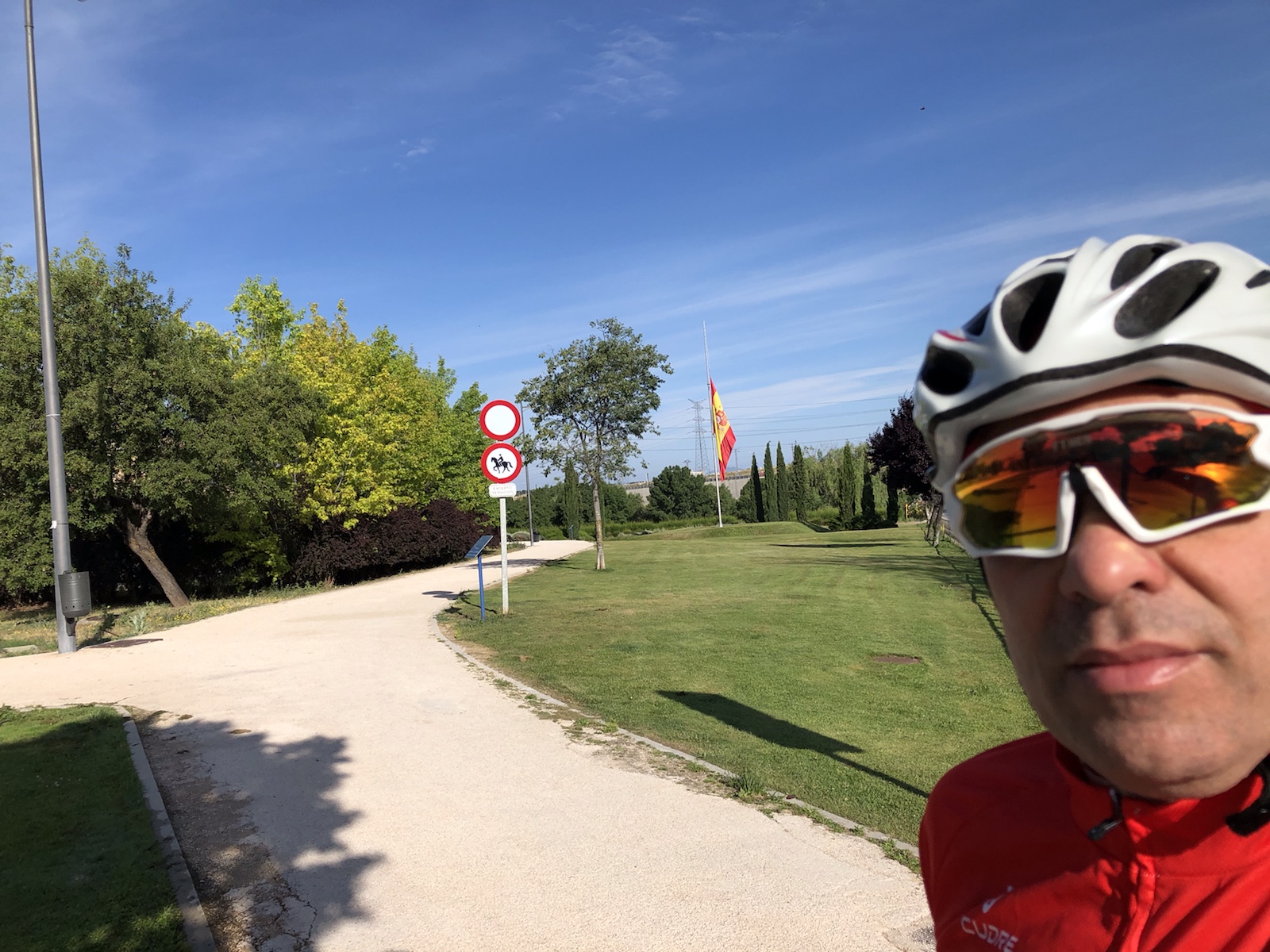 El domingo las sirenas de nuevo me camelan, pero algo menos salgo con mi gravel con Dora, voy rápido por las pistas, voy sonriendo en una agradable mañana primaveral, sin objetivo, bueno si uno solo pasarlo bien. Un biker me dice al salir del sendero que ni lo intente en bajada, que esta petado de senderistas. Ellos tienen prioridad y me hago el perímetro por pista, no vistas al palacio y el agradable rodar por la zona baja del monte. Decido ir hasta la finca y regresar por telemadrid, por el campo de militares y las pistas que van por cerca de las vías, disfruto de la vuelta con las piernas cada vez más cansadas. El número de ciclistas ha bajado, el de andarines también. Me gusta ver a matrimonios mayores agarrados de la mano apoyándose el uno al otro en cada paso que dan. Sabedores que son supervivientes de una mala época de una nueva piedra en el camino que la vida les ha puesto y solo juntos lo van a superar.